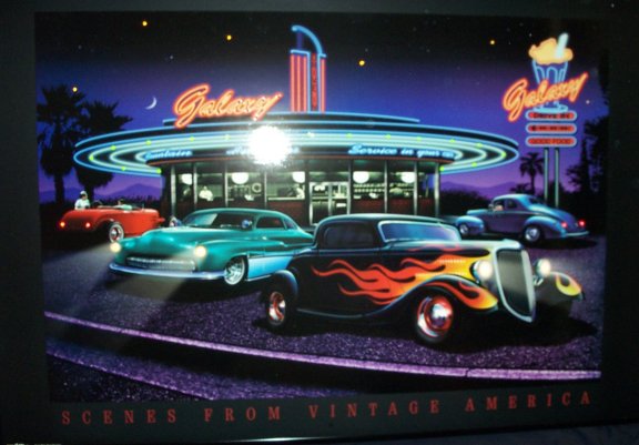 Real Neon Yellow tube features Steak N Shake 56, 57 Chevies and Split Window Corvette looks real ! 10 year continuous use!Huge 24" x 36" |
